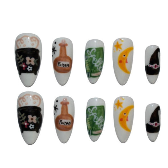 Channel your inner witch with Hocus Pocus! This whimsical set features a bubbling cauldron, potion bottles, spell books, and a charming witch’s hat—nails that feel like a spell gone delightfully right. Lighthearted, magical, and full of playful Halloween spirit.