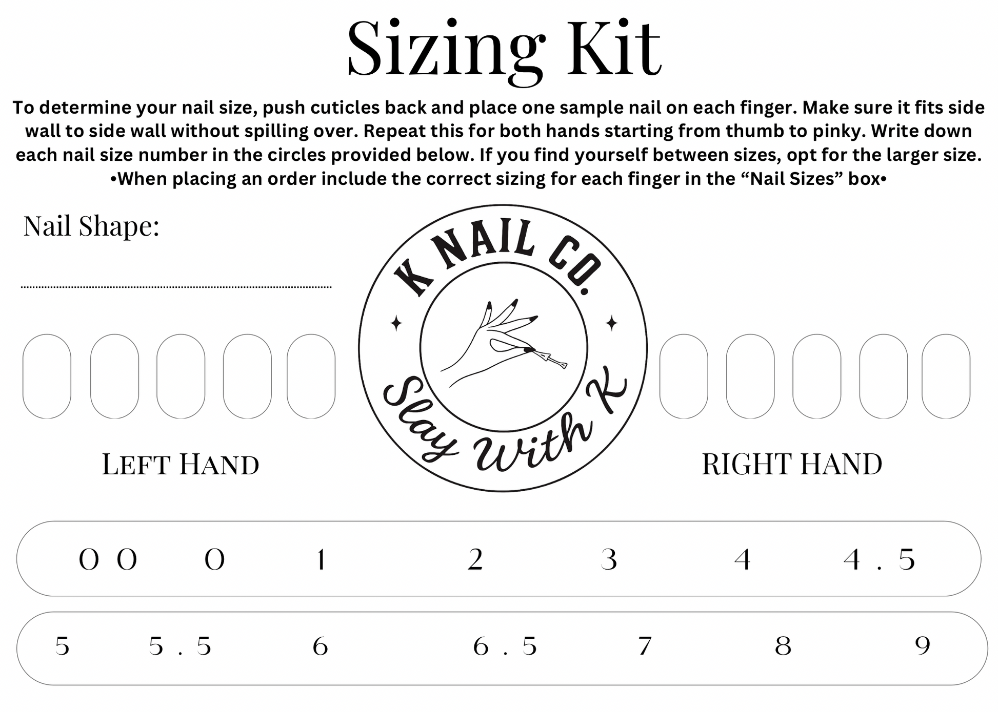 Not sure which size fits you best? Our press on nail sizing kit take the guesswork out of perfect nails. When you order your first sizing kit, you’ll receive 10% off your first full set!